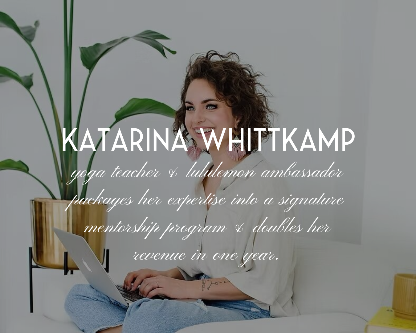 "Kristin really helped me birth my life's work. I felt like you were like a midwife for this content and curriculum to come into the world. I'd been doing the same thing for years without knowing what the clear methodology was and you helped me give it frame and structure in a way that I could clearly communicate it to different learning styles so that it was easily teachable, digestible, and integrated. Having you not only like a sounding board, but also just to help put form and structure around what came so intuitive to me was invaluable. My certification progam has now generated over $20M in revenue and has trained over 2000 students in my methodology"